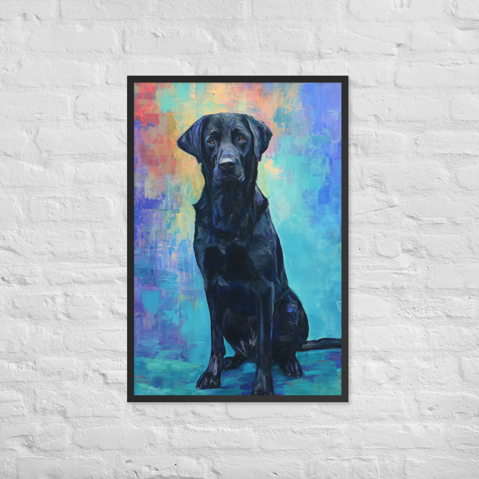 Black Lab on Blue – Framed Giclee’