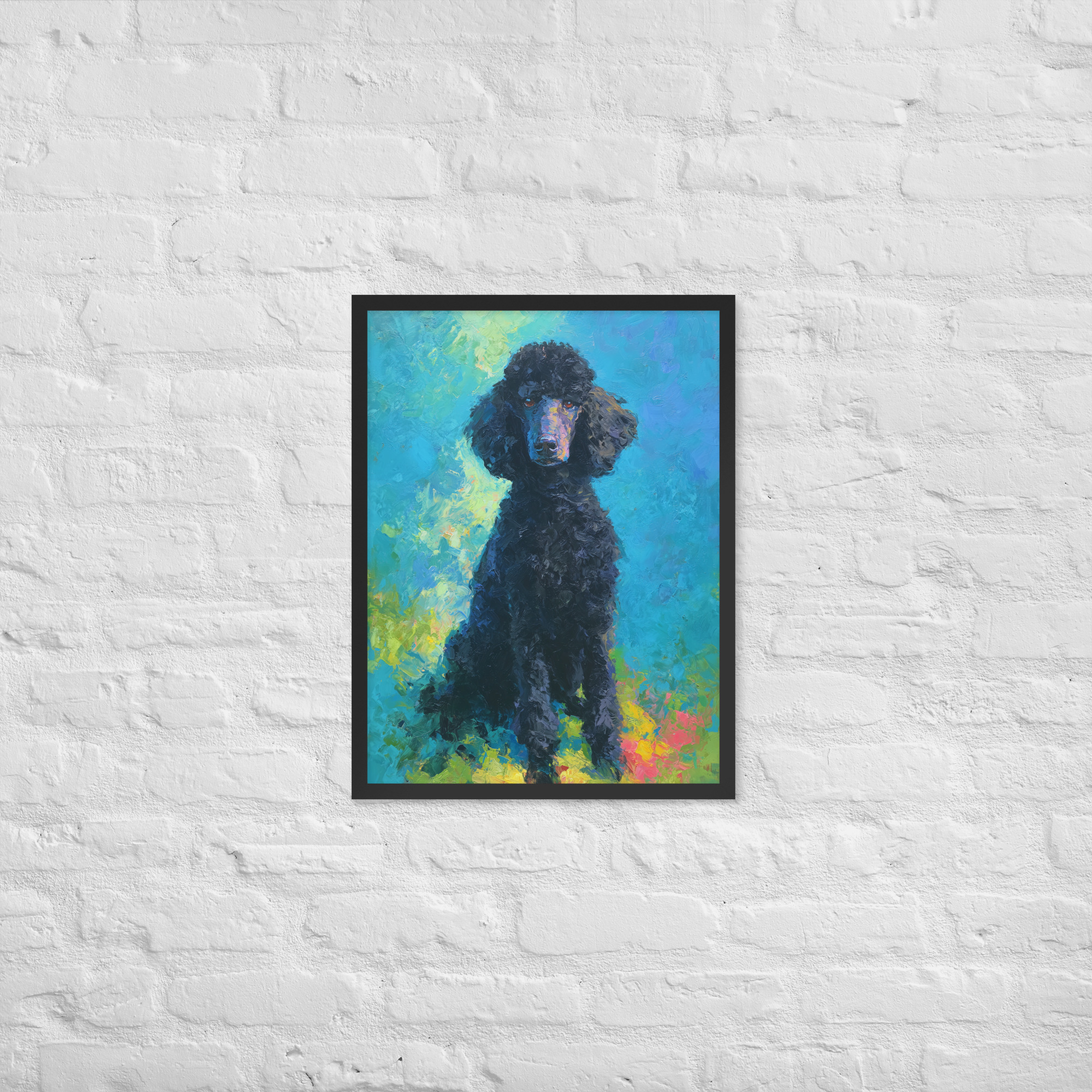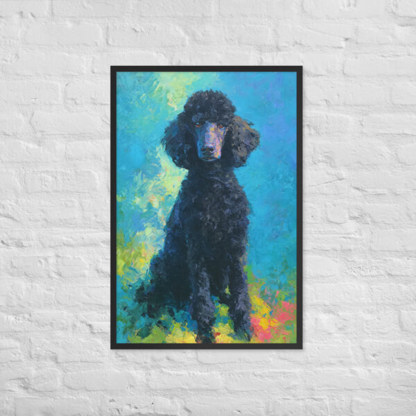 Black Poodle on Blue – Framed Giclee’