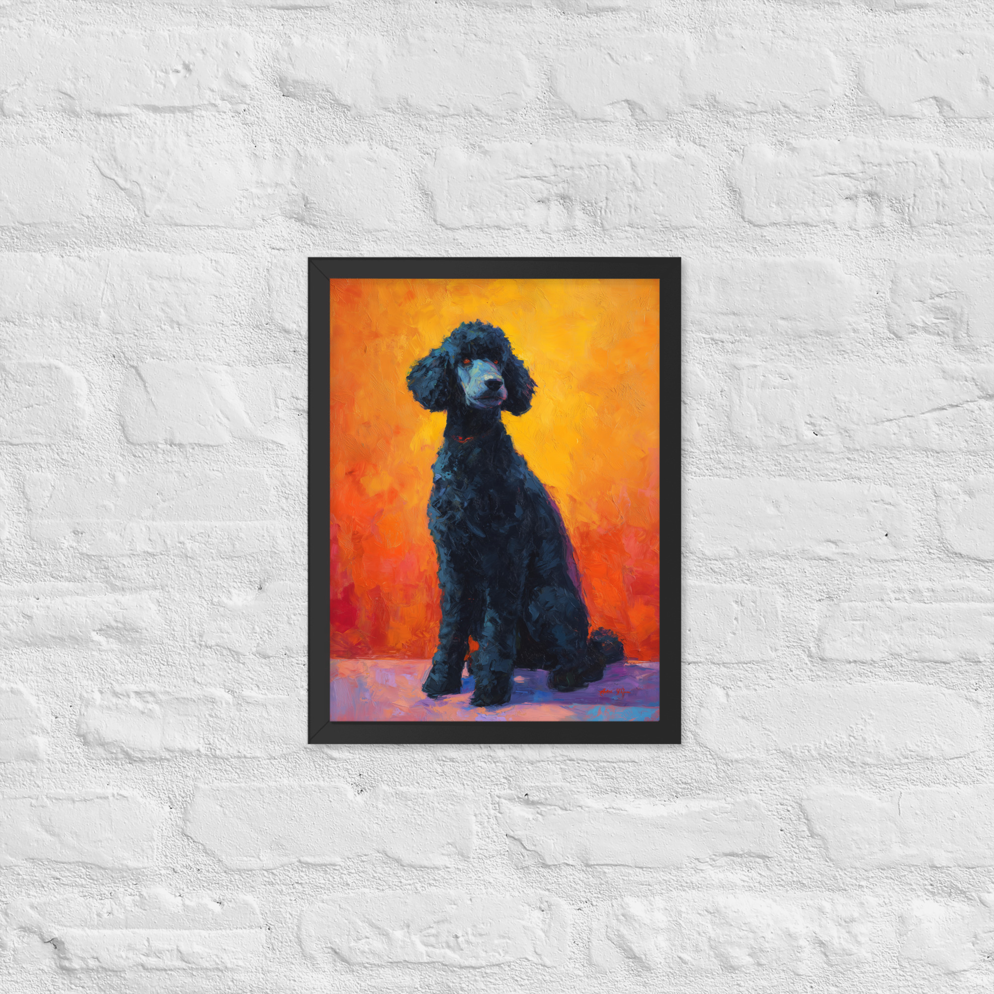 Black Poodle on Orange – Framed Giclee’