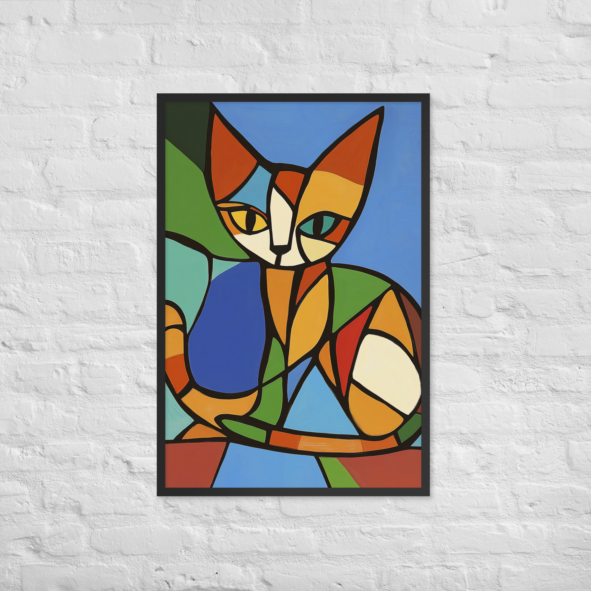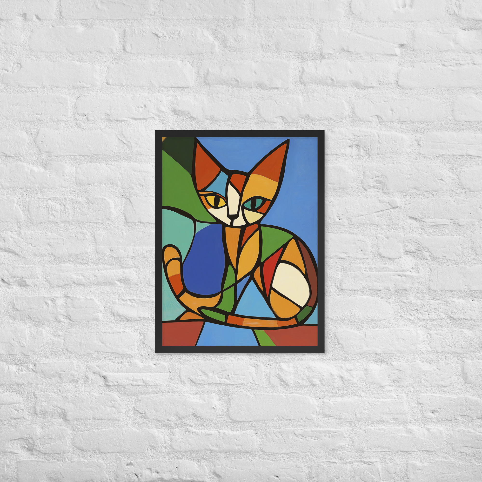Brown Cubist Cat – Framed Giclee’