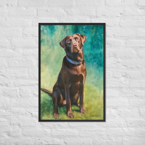 Brown Lab on Blue – Framed Giclee’